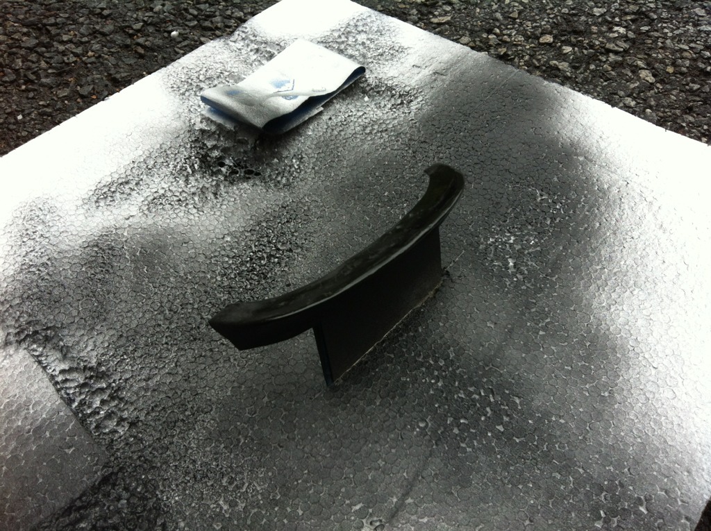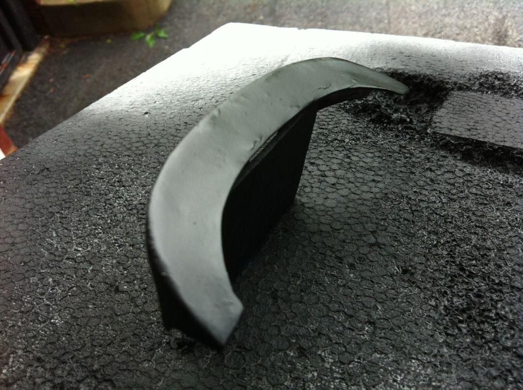 I painted the spoiler black to help bring out imperfections. After the paint sits for a few hours, I'll do some more sanding.