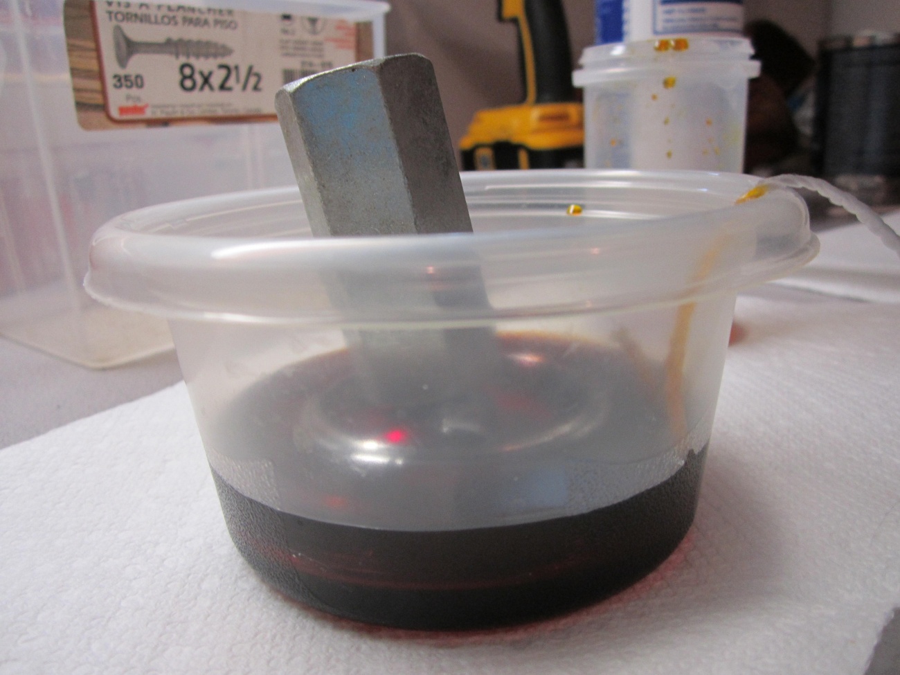 -You will need time(I can take a few hour to go through the process) -Etching acid(found in most electronics part store, it is use for making printed circuit board) Caution: put glove on and protective eyewear, it is acid, do not drink;). Be careful, this type of acid will go through any metal, including the plumbing(if made in metal) in your house, so use your head when dealing with that stuff. Here the bottle: Attachment 38839 Scratch the chrome surface, it acelerate the etching(plastic chrome plating is made with multiple metal layer, one of them is copper(under the chrome), the acid love copper:wub:. Attachment 38840 Next, dip it(time will depend on multiple factor, like temperature, plating thickness, ...) normally it would be faster if you vibrate the acid/part, but depending on the application it can not be possible, like this one, I wanted to keep the chrome on the "RAYS", so I haded to be careful not to have acid to the top of the part, so no shaking. For this part, it did take a few hour to completly eat the metal. Attachment 38841 PS: One thing to be careful is that the chrome will dissolve in small parts, those parts can stick permanently to the red silicone on top of the part. At the end rise the part with water and you should be ready to paint. Attachment 38842 |