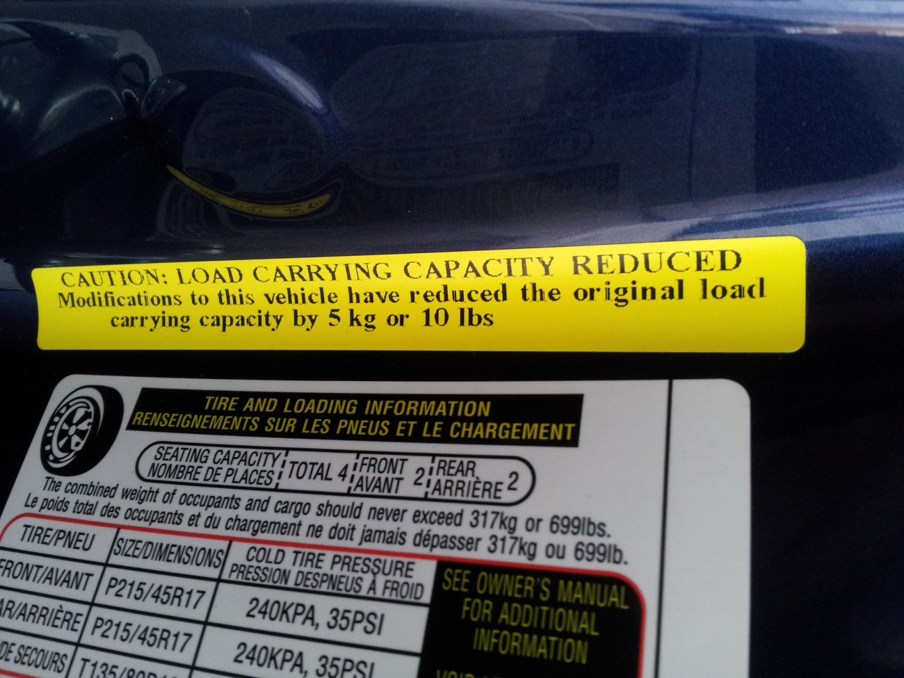 hmmmm im curious too. why would they post that for such a small amount of weight. I mean I easily have 10+ lbs in my car w/stuff I use everyday. What dealer did you go to or buy from?