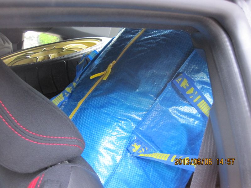 This is looking into the trunk fully packed. Attachment 40696 This is looking through the passenger door with 3 wheels packed. It helps to load the wheels upside down so you can store items in them. Attachment 40697 This is looking through the driver's door fully packed. Note that the 4th wheel is on top of the 3rd on the passenger side. You can see the first of my expensive designer luggage here (299¢ at Ikea). Attachment 40698 The last photo shows my passenger seat. The box in the footwell holds fluids that need to stay upright and reasonable cool to prevent leaking. Designer luggage had t be squeezed to fit. Attachment 40699 |