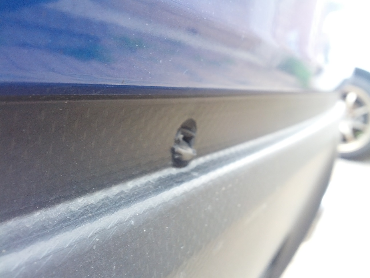 I hate how the ABS plastic portion of the bumper is one piece with the painted portion. Honestly, I would probably just get a real carbon fiber rear diffuser cover and cover up the ABS plastic including that hole - probably costs close to a new bumper painted.