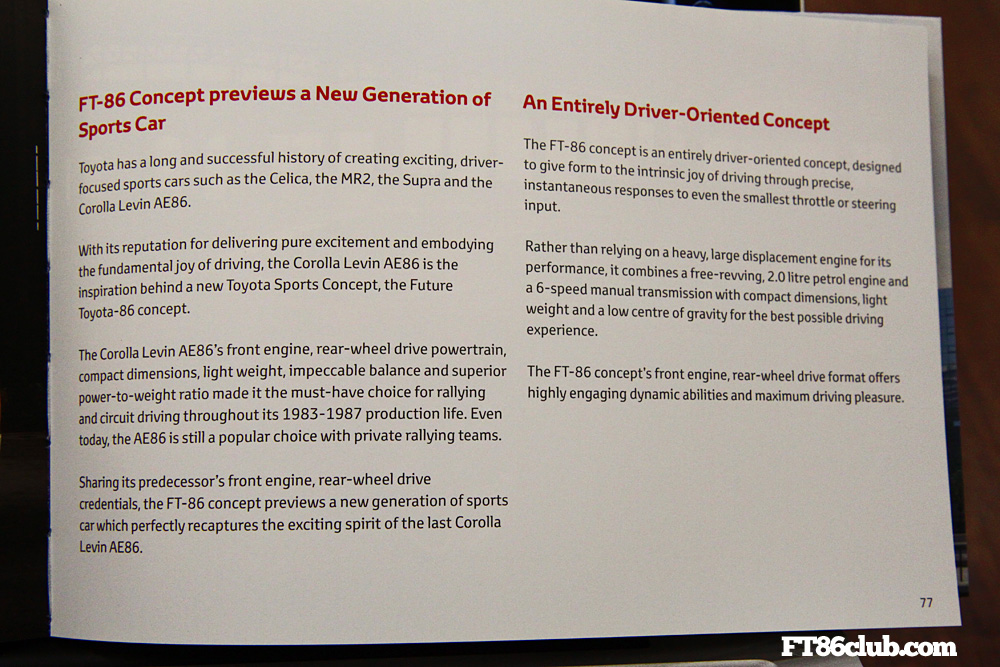 FT-86 section from Toyota's 2010 Geneva media guide