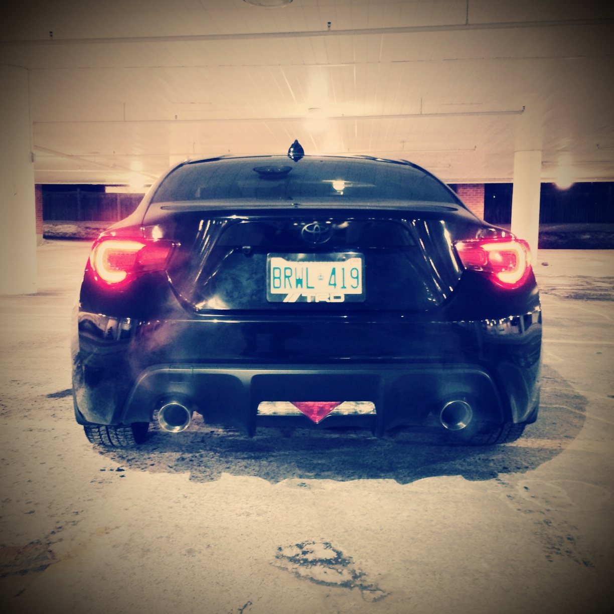 Bought my brand new Raven Scion FR-S in July 2013 and have started to do a few mods so thought I'd start a build thread... Currently: July 2015 Attachment 116185 Attachment 114954 The day I picked her up - bone stock Attachment 54271 As of: December 2013 Attachment 60165 As of: June 2013 Attachment 82173 Attachment 68151 As of: (September 2013) (parked next to my buddy's classic Mustang..we park next to each other to protect from scratches! :party0030: Attachment 54272 List of Mods Here's a quick summary list...Scroll through for photos of each installed...So far have done them all DIY *Feel free to quote a picture of you want to know where I got something/how much I paid/install details/etc. Installed Cosmetic: - Winjet headlamps (black housing) w/ Morimoto X35 HIDs (http://www.ft86club.com/forums/showp...2&postcount=63) - TOMs Red tail lights (USDM Spec) (http://www.ft86club.com/forums/showp...5&postcount=49) - Spyder taillights (http://www.ft86club.com/forums/showp...18&postcount=4) *removed - Red tinted Spyder tails DIY (http://www.ft86club.com/forums/showp...8&postcount=40) - Valenti reverse bar (blinking third brake) - Fog lights (http://www.ft86club.com/forums/showp...3&postcount=59) - DRL LED strip/fog lights (http://www.ft86club.com/forums/showp...1&postcount=43) *removed - TRD aero stabilizing cover (http://www.ft86club.com/forums/showp...&postcount=63") - TRD radiator cap (http://www.ft86club.com/forums/showp...&postcount=63") - TRD oil cap (http://www.ft86club.com/forums/showp...&postcount=63") - TRD oil filter (http://www.ft86club.com/forums/showp...&postcount=63") - TRD shoulder pads (http://www.ft86club.com/forums/showp...&postcount=63") - TRD license plate frame front/back (http://www.ft86club.com/forums/showp...73&postcount=6) *removed - tinted cover - TRD Shift Knob (http://www.ft86club.com/forums/showp...6&postcount=25) *removed - raceseng - TRD decal (http://www.ft86club.com/forums/showp...73&postcount=6) - TRD Console Insert - TRD Winker bulbs (JDM Spec) - Window tint - "FR-S" Console plate insert - Reflective sun guard (http://www.ft86club.com/forums/showpost.php?p=1587924&postcount=50) - Raceseng shift knob (http://www.ft86club.com/forums/showpost.php?p=1587924&postcount=50) - Black OEM VSC/TC Buttons (http://www.ft86club.com/forums/showp...4&postcount=50) - Black OEM shift ring - Clear side markers (http://www.ft86club.com/forums/showp...3&postcount=59) Performance: - magnaflow exhaust - TSW Interlagos (matte black) 17x8+35 (http://www.ft86club.com/forums/showp...2&postcount=58) - Michelin Pilot Super Sports 225/45/17 (http://www.ft86club.com/forums/showp...2&postcount=58) Other: - Improved HU (AVIC Z150BH) (http://www.ft86club.com/forums/showp...9&postcount=17) How I Winterized: - Michelin Xice i3 winter tires (on stock rims) (http://www.ft86club.com/forums/showp...1&postcount=43) - Underbody coating - Temp. Disable of Auto window-down feature - Weather tech winter mats |