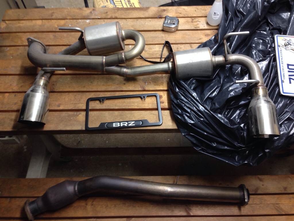 •Nameless axleback and front pipe with high flow cat $750 •Perrin black fat shift knob $50 •Weathertech floor mats $100 •rear bumper diffuser $75 •Bayson BRZ front lip never installed $90 |