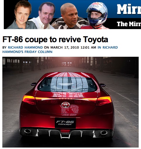 It seems that the FT-86 has certainly caught the interest of Hammond, as this is the second time he has written about the car in his Top Gear column. See his first column HERE.