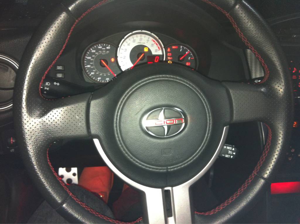 A friend and I were bored so were painted our Scion emblems on the steering wheels red.