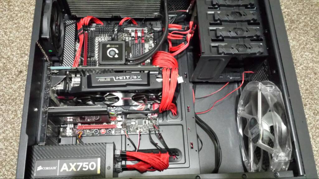 The case is one of the things I rarely upgrade. i5 3550 16GB DDR3 G.Skill... don't remember which exactly EVGA GTX 660Ti Intel 520 series 180GB SSD WD Blue 1TB 7200RPM Asus P8Z77-V LK Motherboard Whatever lame score http://i.imgur.com/wLTvnJb.png |
