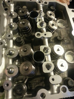 We have talked about the poor spring design on the FA20 and the possibility of the having rocker arm problems seeing as the FA20 valve springs have an install pressure of 35 lbs and at .005 lift it was 55 lbs. We meet with Papadakis Racing last week and compared the 2AZ stock part, their upgraded 2AZ kit and the FA20 parts. The rocker designs in similar to the 2AZ motor. However we have some advantages over the 2AZ. THE 2AZ uses a hydraulic lifter and the rocker arm has a slightly smaller pocket for the valve cap and lifter. The FA20 uses a solid lifter (similar to the GM lifter used by Papadakis) and the rocker that has a touch deeper slotting (closer to the ones they use). Steph also said that the rocker popping off was not RPM related as they tested different rpm ranges. They found it was the bounce off rev limit and knock related. At this time, we both feel the best solution to control the rocker is to upgrade the springs and set the valve lash on the tighter side of the specs as we have already done. |