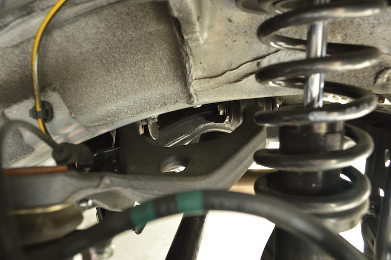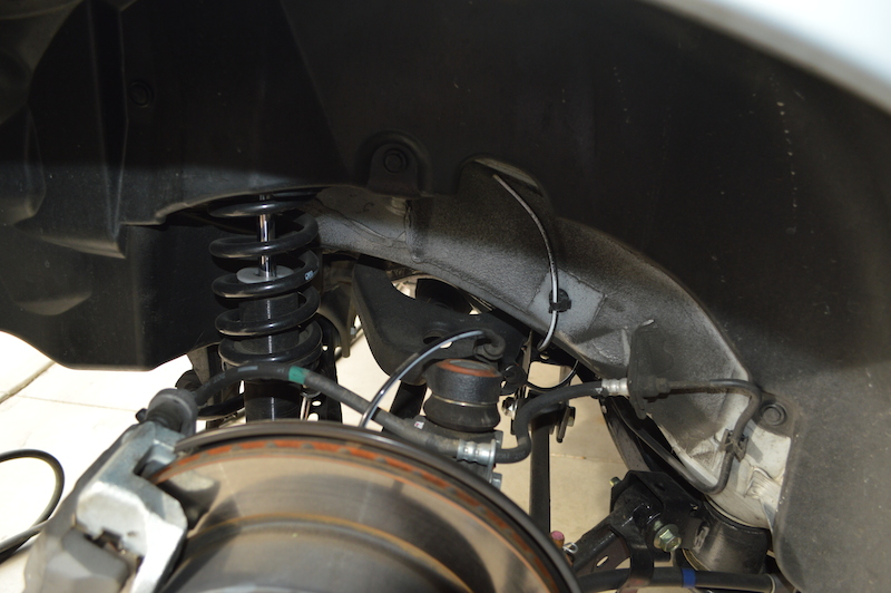 Robert was nice enough to contact us after the installation and voicing his potential concern with the brake line bracket that is connected to the upper control arms. We have not had any issues to date with the the brake line contacting the chassis, but to be proactive we changed the fastener bracket at the back of the upper control arms. This updated design will lower the brake bracket about 1" lower away from the frame and provide additional clearance.