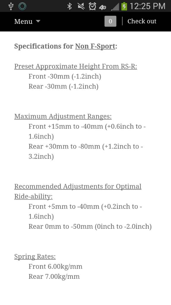 This is on their website for these coil overs for frs. Maybe I'm looking at this wrong I have no idea to be honest Sent from my SAMSUNG-SGH-I317 using Tapatalk |