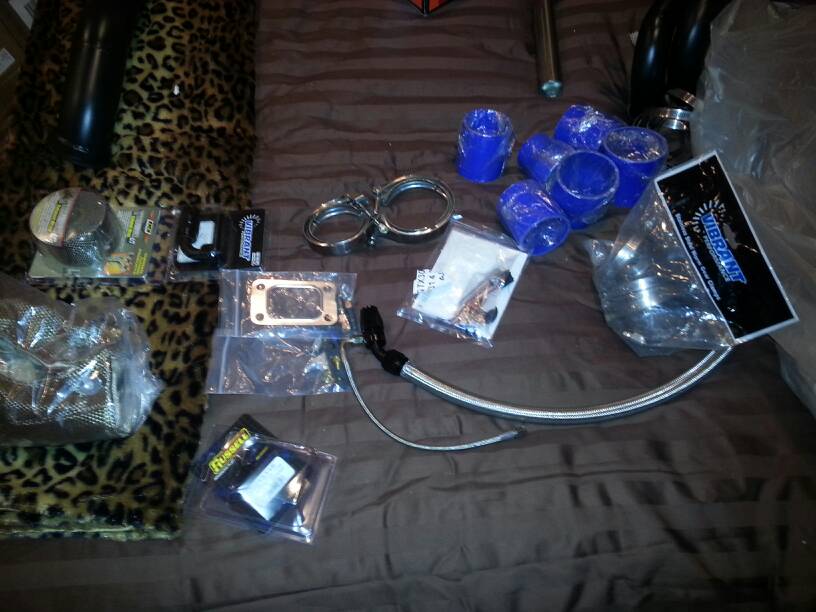 All exhaust parts ceramic coated, IC piping is painted black. Essentially its the base kit sans turbo, wastegate and BOV. Ill post pics tomorrow evening.