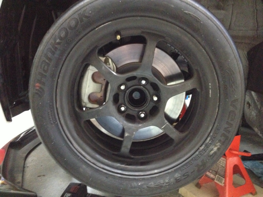 These are 15x7 track lites. 35 offset 5x100. With 225/45-15 RS-3's. Yes it fits. No contact between the rim and caliper but it's DAMN close. |