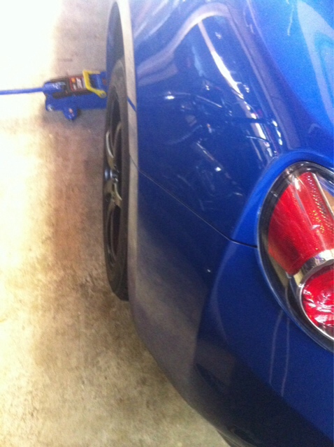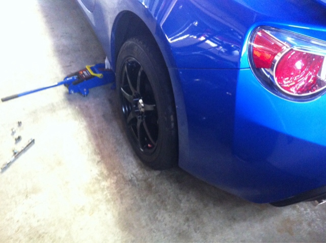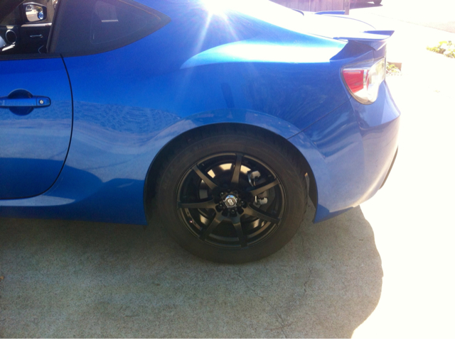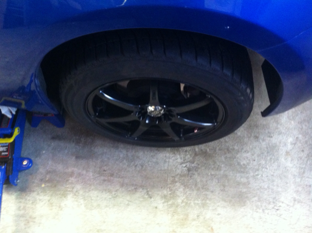 Im test fitting this wheel on the rear driver side. It sits flat on the mounting face and clears stock brakes and suspension.