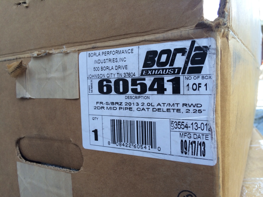 Brand new in box Borla 60541. This runs from the header back and eliminates the second cat and the resonator. $220 shipped in the lower 48.