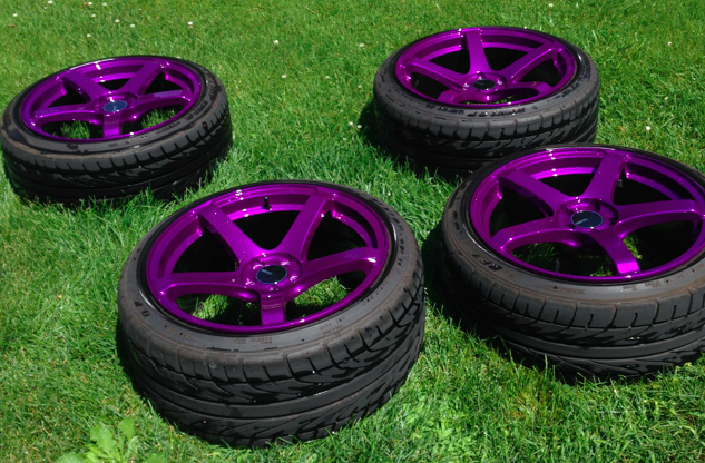 I recently just bought these wheels: candy purple Enkei Kojins (I'm colourblind so these actually just look blue to me) Attachment 84770 My problem is that my car is an Ultramarine, and I think the wheels would blend in too much with the rest of the car (the wheels look like they're Ultramarine to my eyes). Now, I have black plastidip laying around from when I plastidipped my stock wheels and I don't want to go black again. It hides the details on the wheels too much. I can't decide what colour to plasti-dip them before mounting them onto the car. I knew I was going to be plastdipping them when I got them so I knew it was coming. I just didn't think the decision would be this hard. Those of you who are not colourblind as I am, what colour combination would you recommend? Maybe some examples? I'd prefer a glossier finish by the end of it though. |