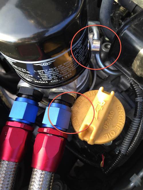 Attachment 86083 Attachment 86084 ************************************************** ******* ************************************************** ******* * Lines and fittings - You'll need total of 8-foot long ss braided lines, two 90-degree AN fittings and two 45-degree AN fittings. I made a mistake and got two regular fittings instead of 45-degree ones. Attachment 86078 Attachment 86079 As you can see, the straight fittings made it impossible to gain access to the oil fill cap. It's pressed against the air box. I think you should be able to get away with normal fittings if you have CAI or a different air box. I was able to find one 45 degree fitting locally and made it work. Attachment 86080 Unfortunately, it's still pressed against the airbox, but at least we now have clear access to the oil fill cap. Even with all that space between it, the oil fill cap will just barely clear. As for the length of each line, I had the 8' cut into two 4' lines. I think it might've work better if I had one line slightly longer (maybe 3 inches longer) than the other, since 1 line has to go across the oil cooler. As you can see in the picture, 1 of the lines certainly has a lot more slack. Attachment 86082 ************************************************** ******* ************************************************** ******* After everything's mounted and installed, I did noticed that the fittings above the oil cooler is pretty much hitting the underside of the bumper beam. There's still a good millimeter or two between the fitting and the bumper beam. So 16 rows is basically as big as you can go without finding another mounting location. Attachment 86081 ************************************************** ******* ************************************************** ******* Since the car's already jacked up, I figured I'll change the oil out and "install" my new Greddy part :lol: Attachment 86086 It's your normal 6 qt + 1 more for the oil cooler. I track a lot so I run 0w30 just to be on the safe side. Attachment 86087 ************************************************** ******* ************************************************** ******* This will be put to test on Monday at Laguna Seca. Wish me luck :D This is my first DIY. Hope you found this helpful :) |
