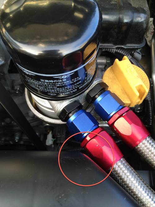 Their fittings are different and smaller at the hose end, so it won't get pressed against the air box. Attachment 86423 ************************************ ************************************ UPDATE #2 I think a 60 or 90-degree fitting might work better. I actually have a little bit more room to move the left fitting closer to the right fitting, but even after yesterday's track day, the damage to the airbox is still quite minimum. Attachment 86420 Attachment 86421 Quote: