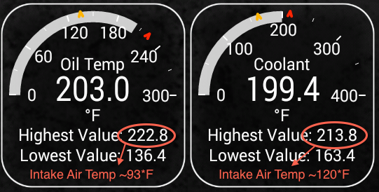 Got some numbers on the oil cooler after yesterday's Laguna Seca. Attachment 86415 Yesterday was in the mid 80s and was a bit breezy, so that could've been a factor as well. Water temperature also looked good despite having the oil cooler mounted in front of it. The car felt good and had zero issues from the install *knock on wood* |
