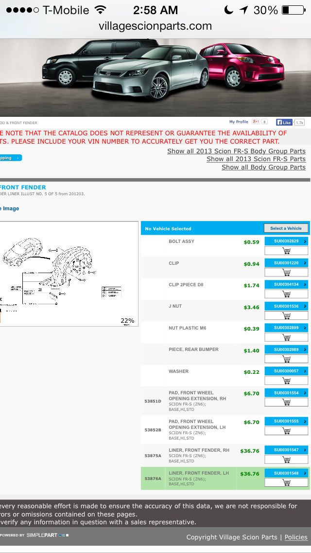 Your dealer is full of shit. Pins shouldn't be more than a dollar and the liner is $42 MSRP. check out this screenshot from village scion http://www.villagescionparts.com/sho...roduct=8464728 Attachment 87934 Sent from my iPhone using Tapatalk |