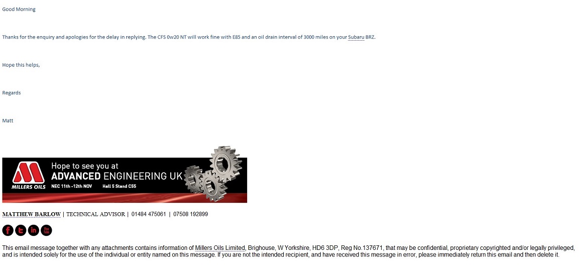 It's great oil that's extremely durable and effective at significantly reducing friction. The fact that it can be used as a legit performance upgrade for the FA20 is pretty awesome. |