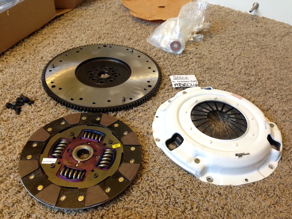 Clutch Masters FX350 (Stage 3.5) - $650 Shipped! (Shipping usually cost $40-$50 included in price) 110% over stock holding power (up to 170% over stock if friction disk is upgraded to the FX-400 4, 6 or 8 puck design) Right now I have my Clutch Master FX350 up for sale (original price $1,150). This is a "repaired" clutch from Clutch Masters but looking at the clutch I would say they replaced the whole thing. New pressure plate, friction disk, pilot bearing, flywheel... This kit has 0 (zero) miles on it and will need to have the 500 mile break in! Honestly, you are getting a new high quality clutch for half the price; I would keep it but I already dropped $1,800 on an Exedy clutch... When I bought this clutch new I paid about $900 plus shipping. I am currently running an special Exedy Hypersingle otherwise I'd upgrade the clutch disk to an the 6 puck cerametalic (~$300 CM), which can handle 350+wtq. The only thing that is not included in the kit is a new throwout bearing and an alignment tool (about 15$ at a auto store). CM says this clutch should be able to handle in the low 300's for wheel torque no problem. If you have any questions please let me know. :) What is included in the sale (all part of the 15738-HDFF-SK kit): 1 x NEW Heavy Duty Pressure Plate (compatible with the FX400) 1 x NEW Sprung Hub Fiber Friction Lined Disc 1 x Steel Fly Wheel (Resurfaced by CM) 1 x NEW Pilot Bearing What you'll need: 1 x Alignment Tool 1 x Throwout/Release Bearing (would order from Clutch Masters or use OEM; I do have a used CM throwout if you want it) IClutch Review and Notes (bonus!): First off, from what I understand and after talking to Clutch Masters the FX350 used the same pressure plate and steel flywheel as the FX400. So why the difference between 110% holding capacity and 170% holding capacity? It is because of the clutch disk and its materials. The FX350 is suppose to incorporate a softer engagement on initial contact with the pressure plate and flywheel. After it is fully engaged it should have a similar "bite/hold" as the FX400. The bonus part is that you can upgrade the clutch disk to the FX400's 8, 6 or 4-puck design and still use the pressure plate and flywheel. Second, the clutch pedal is going to be a little more heavy than stock but this is normal for a heavy duty pressure plate. After the 500mile break in the pedal will become softer, easier to use, and the engagement will be more enjoyable. The FX350's full face clutch disk becomes more forgiving after the 500mile break in, just like any stage 3 and above clutch. You will notice the difference at pedal positions when you are engaging the clutch disk. The first (softer) engagement will feel similar to stock (ignoring the heavy pedal feel). As you begin to engage more it will feel like...as what I kind of thought of it as...sand paper or a puck like engagement, which is the metal in the "puck" design for a stronger hold and heat resistance. Lastly, I bought the steel flywheel because I don't do track racing. The steel flywheel will help keep the car from stalling more easily compared to an aluminum. The drive train noise and clutch chatter will be reduce, especially when using a sprung disk (included in kit). Overall, I did not have much clutch chatter at all compared to the aluminum flywheel and a sprung disk. Hope all this information and my two cents helps...maybe I should move this to a review sections HAHA! Thanks for looking!:D Source: http://www.clutchmasters.com/fx350-15738-hdff-x/ http://www.clutchmasters.com/steel-flywheel-fw-738-sf/ SOLD | SOLD | SOLD Pictures: Attachment 93541 Attachment 93542 Attachment 93543 Attachment 93544 Attachment 93545 Attachment 93546 Attachment 93547 SOLD | SOLD | SOLD |