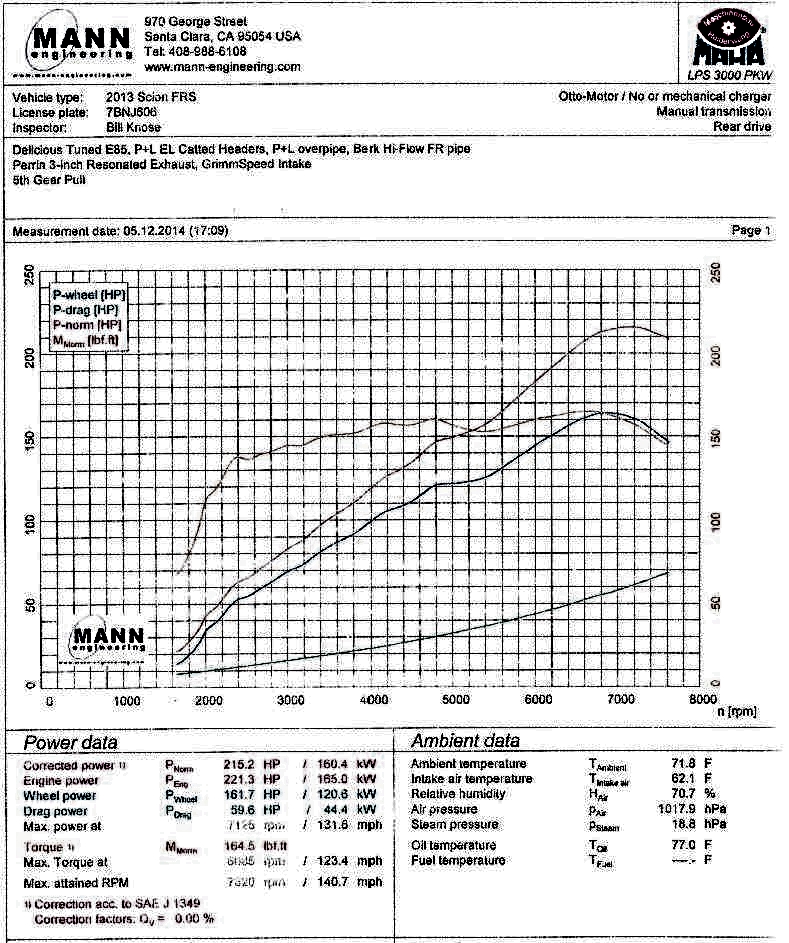 Now unless you have the same components and specifications as I do (listed below), I expect neither of you to have the experiences I've had. Really, no two cars can ever be the same nor will they produce similar numbers. Car Specifications: 2013 Scion FR-S ECU: ZA1JA01C Engine Work: P&L EL Catted Headers P&L Overpipe (slightly dented due to fitment issues, which really was because of a defunct downpipe) Grimmspeed header gaskets CircuitWerks Pulley Set Grimmspeed Intake, previously K&N drop-in filter/modified snorkel/Mishimoto intake pipe Berk High-Flow Catted Frontpipe Perrin 3" Resonated exhaust RS*R Ran-Up Oil Additive Replaced factory high pressure fuel pump 3x (THREE TIMES!!!) Moving on, take everything you read with a grain of salt, should you need to..... History: I took the FR-S off the lot in August 2013, with little knowledge of the platform other than knowing I really wanted it. I scoured this forum picking up parts here, there, everywhere. From TOM's, to a filter, to lights, it kept going. An invitation was pushed my way to a local meet happening a couple months away. Quite hesitant, I didnt want to go, but I'm glad I did. A local vendor scheduled to booth at the event was selling a WORKS AB-R exhaust; I wanted some growl from the relatively quiet engine and this seemed like a cost-effective solution. No matter which manual car I had, the exhaust was always modified so I could hear the engine to engage shifting. Plus, it was an opportunity to pickup the exhaust and meet local 86's (to whom which some have become best friends). It didn't cross my mind that I'd buy anything else that day...boy was I wrong. That was where I first met the Vishnu guys. They had a booth up showcasing their OpenFlash Tablet just released for the Twins. +18 WHP with a palm sized tablet - heck, why not!? I was thoroughly impressed with how quick the tune was done, how even myself could do it, and all at a competitive price; you cant beat $499. I left that day with a huge dent in my wallet, but came home with a completely different car. Torque dip - GONE. Since then, I progressively kept up to date with the newer maps. Came from version 1.2 all the way up to 2.06; it's been a little under 14 months of OFT ownership. I never got into datalogging, or really even using the OFT outside of upgrading maps. It wasn't until my first session at the track a few months ago to start using the diagnostics tools. The OFT has come a very long way, and it's the most robust tool I've seen in it's price range. There's a long list of diagnostics you can pull from your car using the OFT: engine load, RPMs, AFRs, throttle %, timing, it goes on...And I like the fact that you can clear CEL's, though I've never had to. OFT Usage: The OFT is so simple that it doesn't need instructions. It's a tablet you can pick up, tap a few times, flashed, done. It's an all-in-one tool eliminating the need to get an OBD II bluetooth diagnostic dongle and unnecessary gauges. Never needing the tablet after flashing, it spent most of it's time in my backseat. And I even kept the tunes on when taking my car in for service -- in and out undetected. Ethanol: I was heavily resistant to using E85, even though my friends with the OFT continued to praise it's existence whenever the topic came up. The problem with E85 for me is the lack of stations around the area and I'll admit....though I've heard of E85, I had no idea how to properly use it. I eventually gave in. At this point, I was far behind everyone else that had switched to E85 with OFT, several map revisions before. The ability to load up to 5 maps was convenient and loading the BIN files made it stupid easy. Crossroads: As the engine mods started to staple off, it came to a point of, "What should I do next to the car?". Do I go FI, should I keep the car as is, has everything been worthwhile, or should I consider a different car that's got the ponies from factory? The curiosity continued after seeing numerous 86 drivers posting their dyno numbers on the forums. Could I potentially hit 200WHP? I definitely should be with everything I've done so far... Mustangs, Jets, Packs, and MaHa: Another area I was unfamiliar with...which dyno should I go for and why? I looked around on Yelp to see what people were saying about dynos. Called around a few places: some didnt answer, and some didnt have availability within that week. Some of you can relate with me when you want something, you want it now. My last call was with Mann Engineering -- they had availability at the end of the week. Mann was a familiar name, I actually won a T-shirt donated by them at one of the events and their Facebook page showcased a couple of cars that I'd known the owners to. So sweet, I'm getting my car in and I'm definitely going to be hitting 200WHP. Swiggles and Bumps: The MaHa dyno runs way longer than any of the other dynos I looked in to. This particular one runs an "Endurance" method, which starts to calibrate itself around 1500rpms and ramps all the way up till max speed. For whatever reason, my car wasn't able to get the dyno to calibrate itself running 5th gear around the required range. The technician floored it, car started to shake, and couldn't move the dyno properly. With that being said, a completely stock FR-S was able to calibrate that same dyno in 5th at 1500rpms. So, the dyno run was dropped to 4th gear, but started to report at a higher range of 2500rpms. Its not a pleasing feeling knowing your car is having issues and the dyno isn't even anywhere being complete. Didn't end there though. Once the fairly ascending line continued to climb in 4th gear, it suddenly dipped off then climbed back up at 4700rpms. Watching the car on dyno from outside the room, there's a very faint discrepancy you can catch if you pay attention. This is visible later in one of the clips near the bottom; car is strapped in, no outside variables to distract the naked eyes and ears. 1 of the 4 pulls, dip around 4600 Another pull, also 