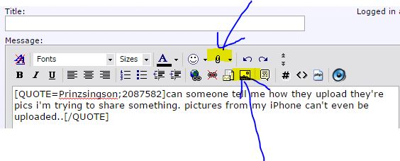 can someone tell me how they upload they're pics i'm trying to share something. pictures from my iPhone can't even be uploaded..