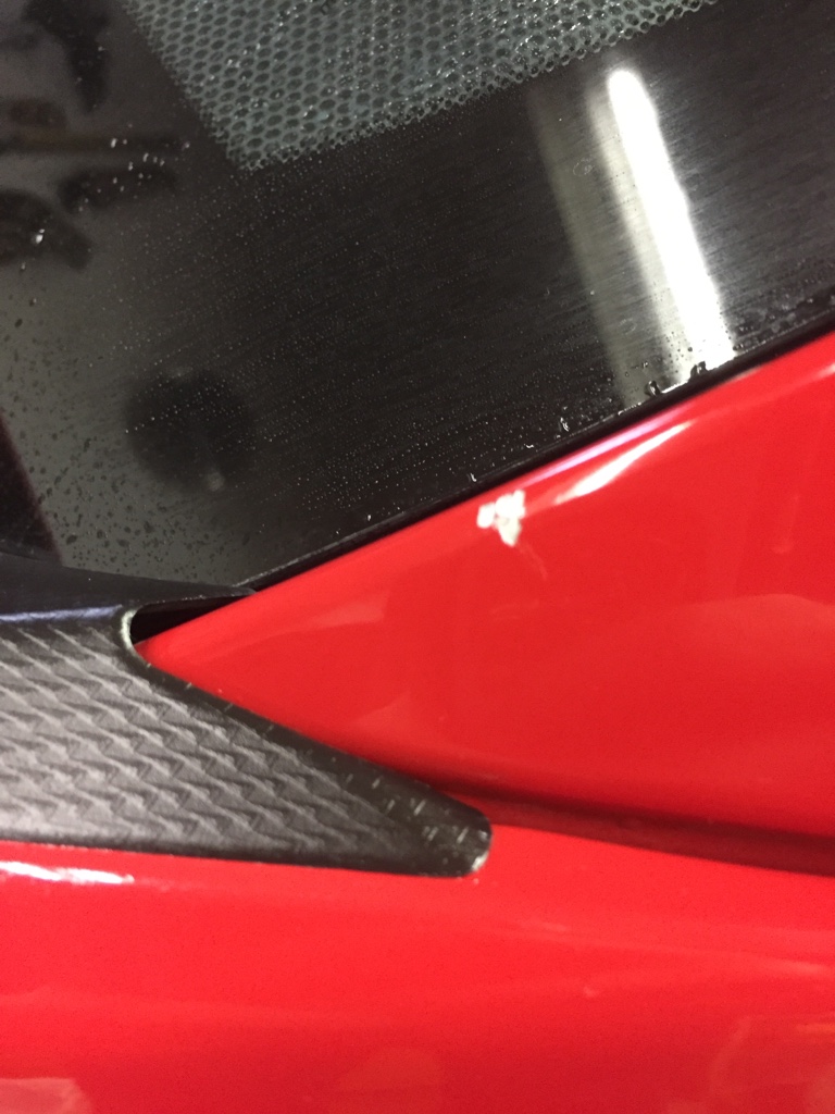 professional touch up application... you won't be able to tell. Red I think is a single stage paint, and certainly looks single stage or single + clear?