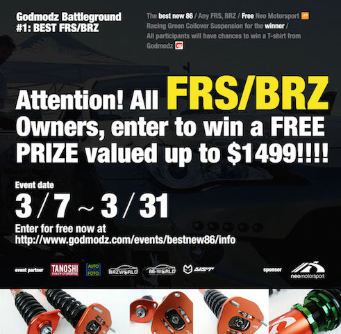 NEO Motorsport is proud to sponsor GODMODZ for the very first FRS/BRZ build competition :)