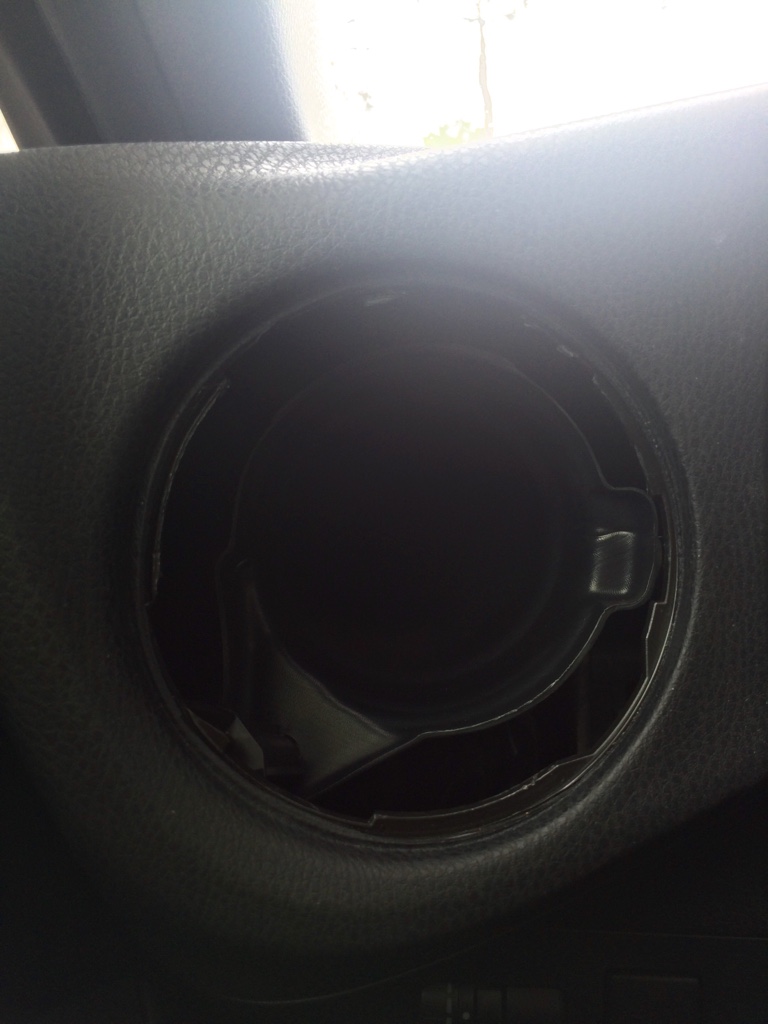 I removed both A/C Vents, and then removed the trim ring around them to Plasti Dip them white. Passenger vent and trim went on without a hiccup, Drivers side is another story. Trim ring snapped into place, Vent however seems to not want to set correctly. Any ideas? I've tried spinning it in different spots and the only spot it fits, is the problem Im at. See the pics below and give me your input: