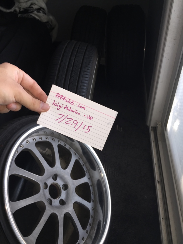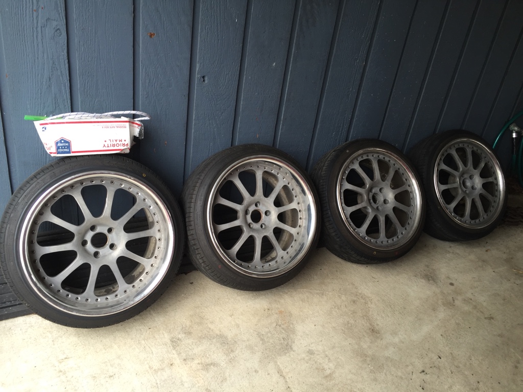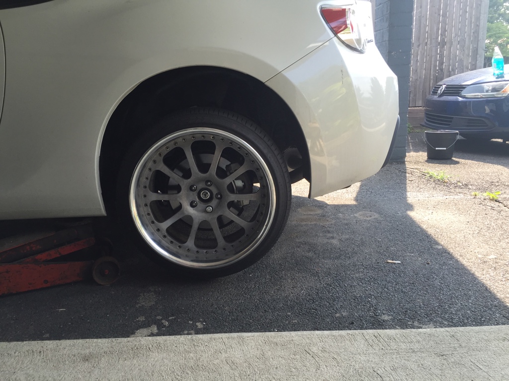Testing waters: DPE R10 Staggered Forged 2-Piece Welded from Manufacturer. 5x100 (with hub rings to bring center bore to 57.1) 18x8 ET30-35 w/ 205/40r18 18x10 ET30-30 w/ 215/40r18 Comes with stretched Nankang's that were on when I picked these up. Good tread, some rubbing on front tire as pictured from previous owner. Lips clear coat is beginning to peel, and there are some nicks from previous owner. Never personally driven on, and test fitted once. DO NOT recommend running these on OEM studs/nuts. Attachment 116477Attachment 116478Attachment 116479Attachment 116480Attachment 116481Attachment 116482Attachment 116483Attachment 116484 (Do not remember offset, faces have since been sandblasted.) Bought these for my FRS with the intention of refinishing them in the classic "prima donna" finish, but may go a different route. Also have genuine Red DPE center caps that will come with them. Were originally on a MK4 Jetta. Don't have to sell, but would prefer some cash to use elsewhere. $1100 OBO, also may consider trades. Located in Levittown PA. Open to all offers, prefer not to ship, but may consider it. |