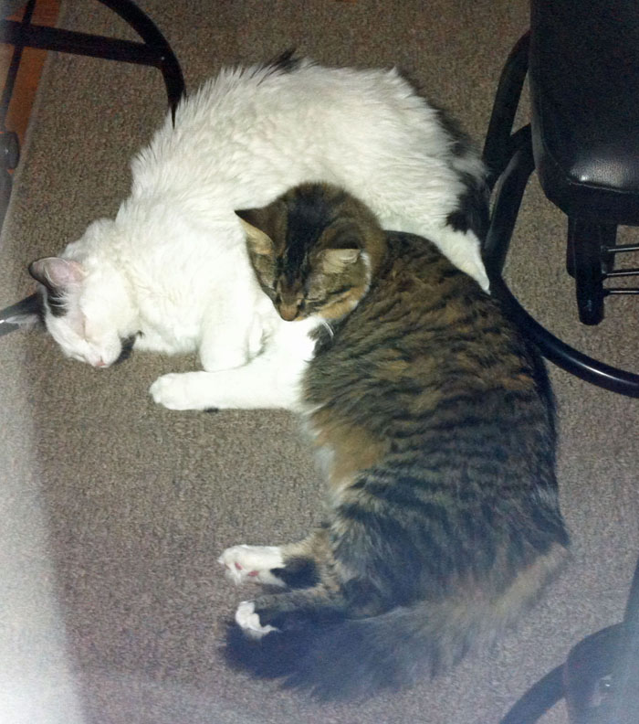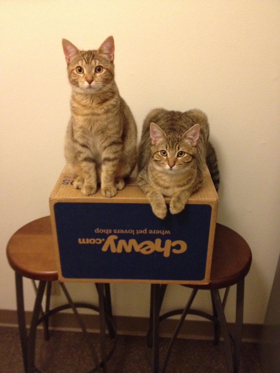 Here are my new kittens, Chibi and Chazz. Chazz is photobombing me in my avatar.