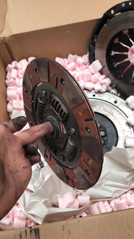 Im making this post to make others that may be considering an aftermarket clutch aware of what I've gone through with my competition stage 3, in which I was only able to put about 8k miles on in a matter of 10 months (installed 12/15) before it began giving me gear lock out issues, and hard shifting issues. Long story short I sent the clutch into competition for inspection. ($40 of my own money on (10/24) to ship via ups 2 day shipping as they only accept packages from ups or FedEx) after not getting a response from competition I called them on 10/31 to get some answers. I was informed that they were "just finishing up my paperwork" and was informed that the fingers on the pressure plate did not have enough lift to lift the pressure plate off the disc, in turn not allowing the clutch to disengage completely. They told me I'd be receiving a refund for the kit, they just don't know by whom. Whether it's the dealer of the kit that sold it to the shop that did it, or competition themselves. As of today, I'm still waiting on competition to get back to be with how and when I'll be receiving my refund. Last time I spoke to them was on Monday the 31st, which was when they told me I was going to be receiving a refund but they weren't sure from whom (them or the dealer the kit was purchased from), and that they'd be in touch by email or phone in the next couple of days. I've since left them 2 voice mails as they have not been answering their phones. One on Thursday the third, and one today, the 7th. I'm a little less than satisfied with the way they are handling this whole thing, hoping they make it right and give me my $650 back for the defective kit as I've already replaced the competition with a comparable ACT unit which I like MUCH more. Here are some photos of the clutch after it was removed from the vehicle.