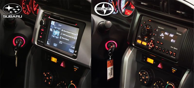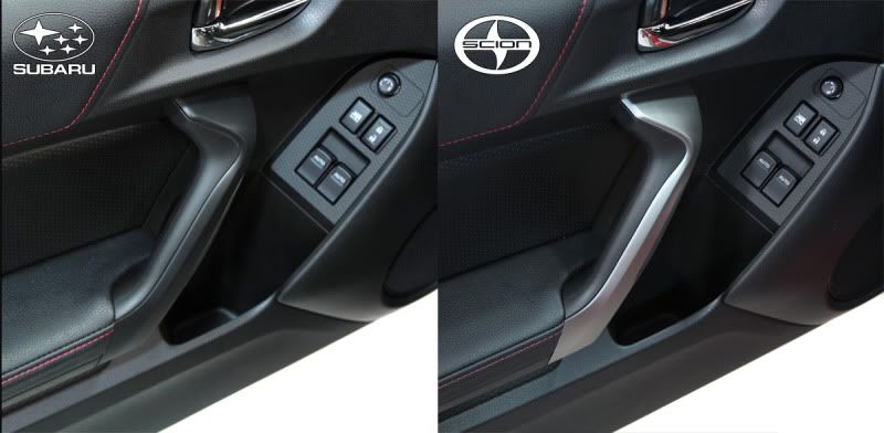 Gotcha. I was going off the pictures that were posted which showed Subaru with black door handles and Subaru with black to the left and right of the HVAC instead of silver. Thought there may have been a trim difference since I have silver in both those areas. Also showed Scion with silver to the left and right of HVAC instead of black. Didn't mean to add to the confusion, guess I was confused by what I saw. My apologies. |