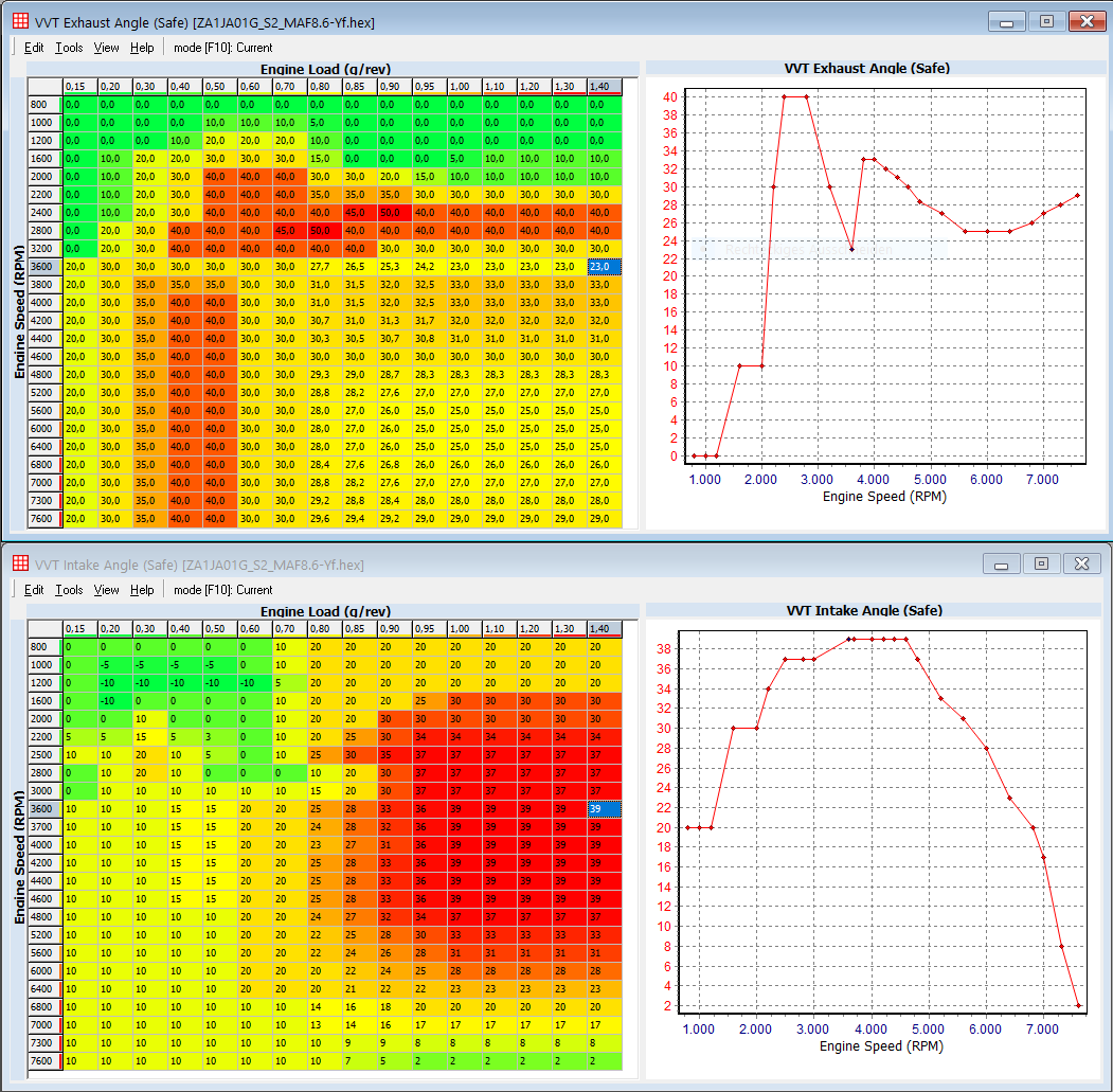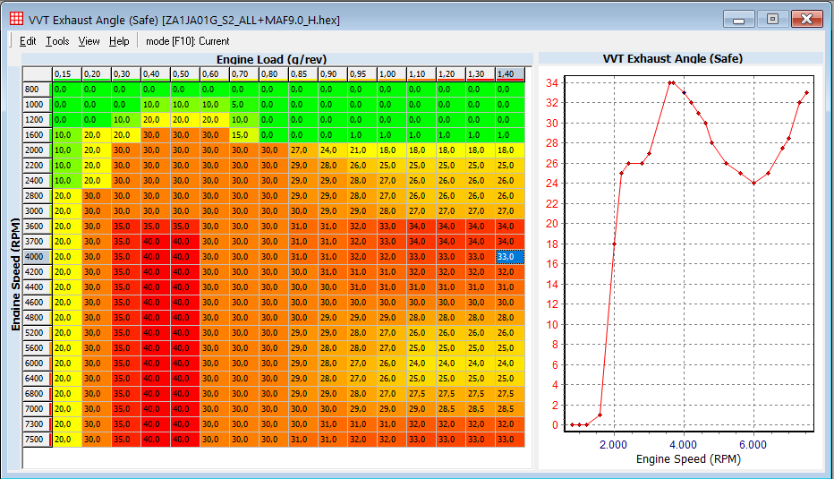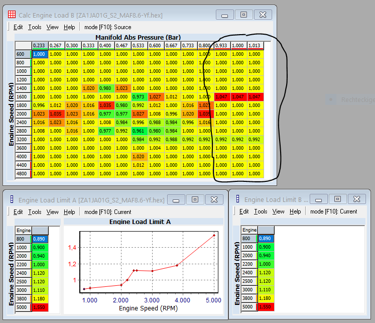 All the data in the tables about load 1.1+ have been determined with the help of vgi's mafscaling tool.