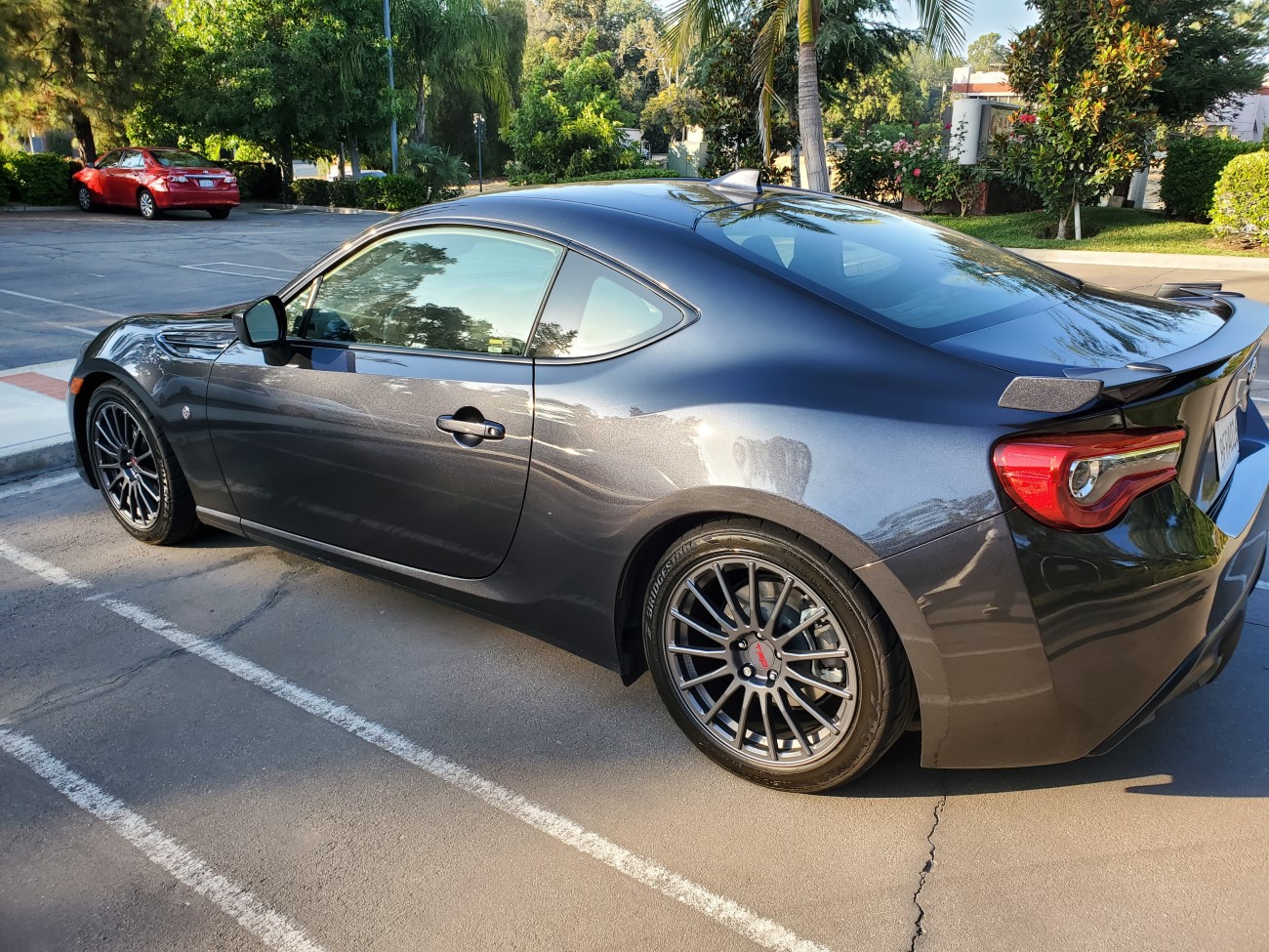 If there is an existing thread, please merge. TRD Matte Grey Forged 17x7.5 +43 TRD springs (-1") and Bridgestone Potenza RE-71r 215/45/17 Will put 225s on when these tires wear out, but I had these on my stock wheels already and didn't want to buy new tires over such a small change. Last edited by xdavidx; 08-01-2019 at 02:47 PM. |