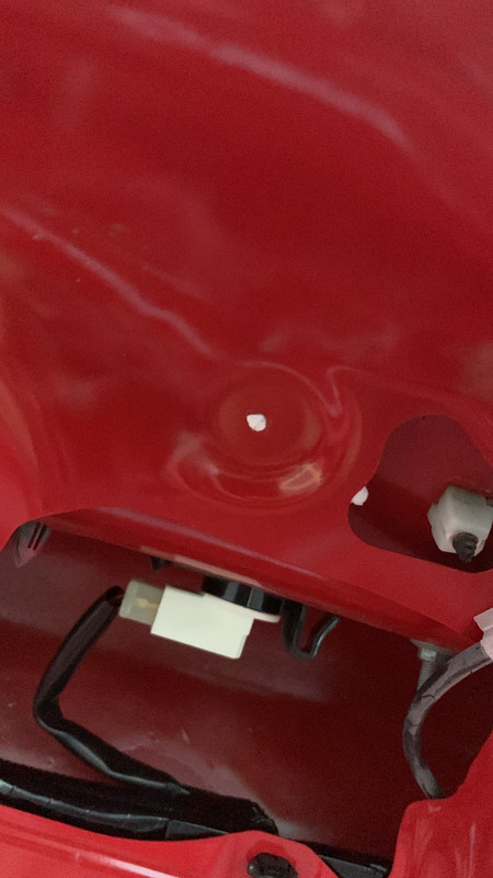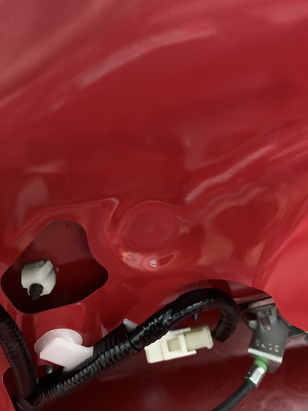 Here are some pics of the underside of the trunk lid This is what it's supposed to look like. That smooth circular divot ![]() And here's where mine separated and the white thing is a tissue stuffed in between the two layers to stop them from rubbing. Tiny tiny hole but makes quite a noise