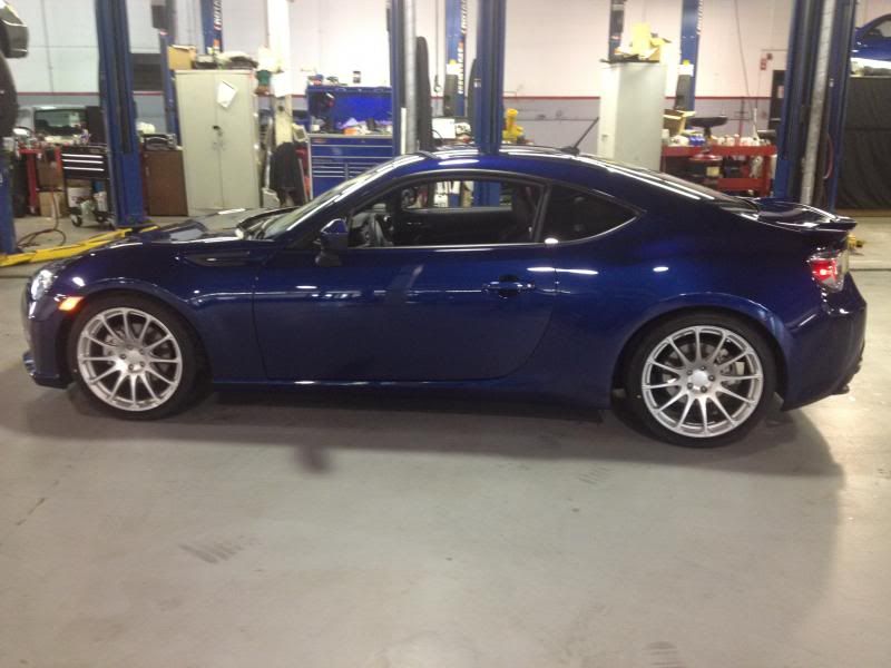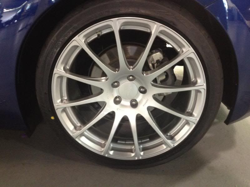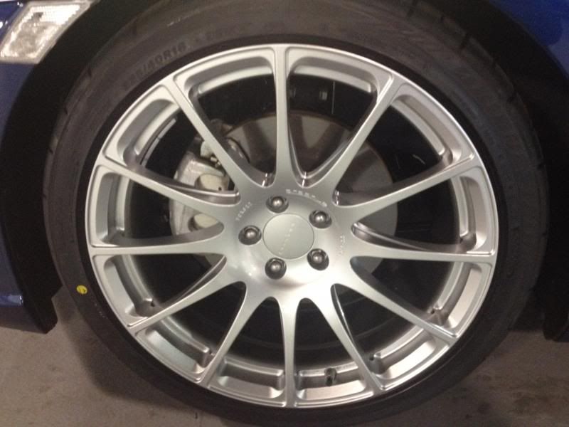 Got mine installed! 18x8.5 +45 front, 18x9.5 +45 rear, in British Silver with Bridgestone RE-11 rubber, 225/40R18 front, 255/35R18 rear.