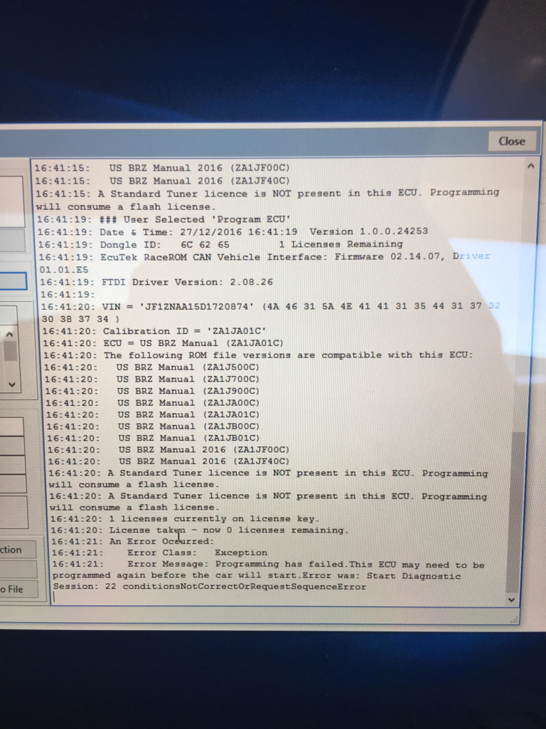 Trying to reflash my ecu after getting a new license. After applying license updates and updating the ecutek software I tried to program my ecu with a tune, an error occurred and stating