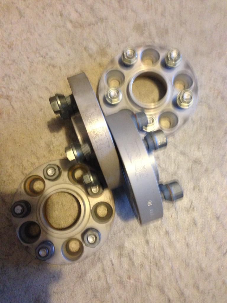 I have 2 set of these spacers that I am selling, a pair of 20mm and pair of 25mm. They are in great condition. I will post pics tomorrow. here's what it looks like on the car. $210 shipped within the US. You can text me 856 834 8662