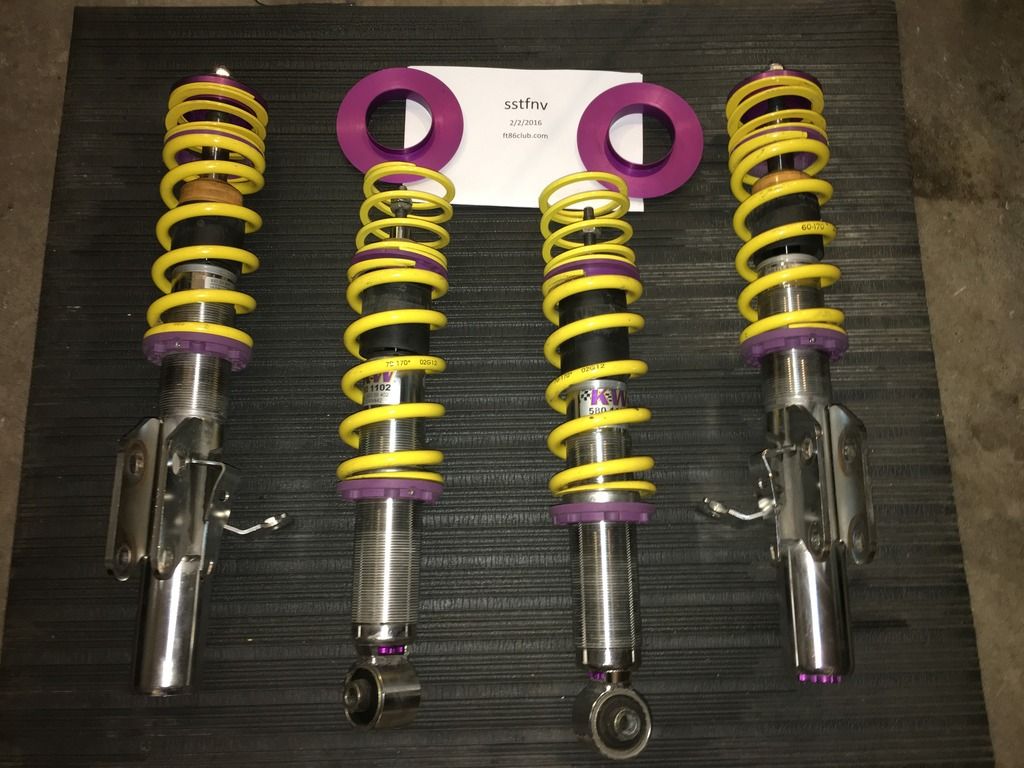 KW V3 coilovers. Passenger side front is missing the lower (compression) adjustment knob. You can still adjust it with pliers or a small wrench. Other than that in they are in great shape, no leaks. I don't have the original tools but all you really need is an Allen wrench to adjust the rebound. Local pickup only. Located in Arlington Heights, IL