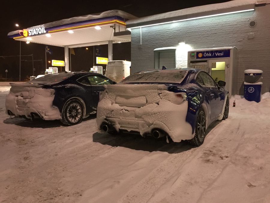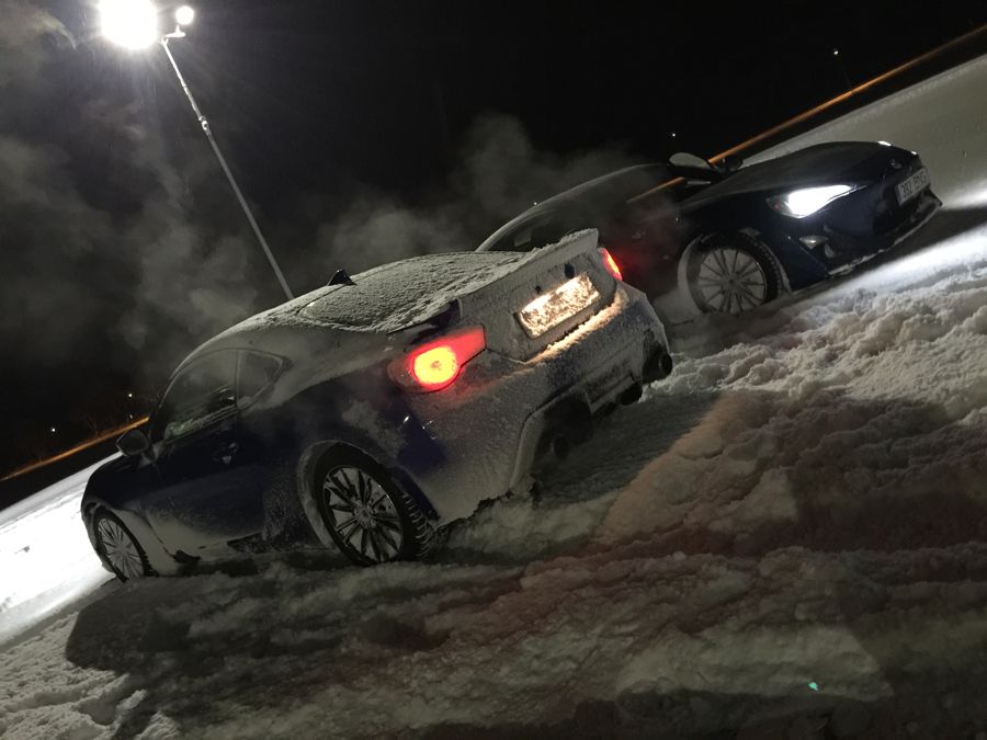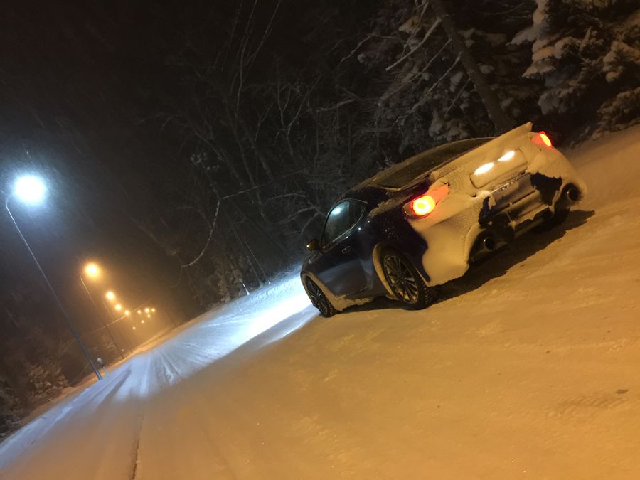 Thought I would finally create my own topic here, to keep track of things and maybe it's of interest to someone as well? I started looking for the car in early 2015. Looked at the GT86 also (would have liked to get one with the aerokit), but then I got an awesome deal from Subaru. Since there were no cars in stock anywhere in the region (!) that would be manual and either WRB or Pearl White (2nd choice), I had to make a factory order. Finalised the order in late february and was told to expect delivery in august. That was a LONG wait! But luckily it arrived a little faster! I'm not planing on doing anything too crazy. Probably coilovers next season, then maybe Essex Sprint kit and wheels, that's the current plan anyway. Current mods are: Cusco Heel&Toe Pedal Pivot Dual Gauge Pro DPW Water/Oil Temp & Voltage Meter STI Rear Gurney Flap Brodit Pro-Clip phone holder Alpine subwoofer in the trunk Bought, not yet installed (waiting for spring): Forester XT Oil Cooler STI Steering rack bushings and bolts from BRZ tS Advan AD08 summer/tracktires Porsche 997 GT3 brake cooling spoilers Ferodo DS2500 front pads Carbone Lorraine RC6 front pads Carbotexh XP8 rear pads (used/left over from last track season) STI Sound Generator ![]() Went to see her (1st of July, 2015) ![]() And delivery on the 2nd of July in the evening after work, that was a LOOOONG day at work. 14 km on the clock, but not for long Drove about 250 km that evening, couldn't sleep after that, wanted more, way more ![]() ![]() ![]() ![]() ![]() Allthough I made no roadtrips and actually held back on driving it, the mileage kept increasing...alot... This was after a little more than 2 weeks ![]() ![]() After that did a few trackdays, god how I missed that! In front are our local track rental GT86's. ![]() ![]() Then it was time for the first small mods: STI Rear Gurney Flap Cusco Heel&Toe Pedal STI Sound Tube (still not installed)![]() 1 month after taking delivery... ![]() Then I went to a top speed event. Standing mile on an old concrete airfield. Everyone got 2 tries. 1st try I got to 208 km/h in 5th gear (close to the limiter). Second try I pulled in the mirrors and decided to change to 6th gear earlier, big mistake! Speed was something like 204 iirc. ![]() Last autumn drives, before the constant rain and then snow... ![]() ![]() ![]() Mini 86-meet (not so mini actually considering that's almost 10% of the GT86/BRZ population in the country )![]() Aaaaand then the winter came. Now I'd prefer not to have any snow at all, but might as well make the most of it? Installed Hankook i-Pike RS W419 studded tires and the winter fun could start ![]() Yeah, 1st snow of the seaon is always fun ![]() eeh...snowed even more during the night ![]() Even more snow fun ![]() Rest break ![]()
