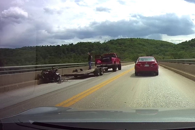 On my way home from PA yesterday, south of Lancaster. Apparently bungee cords didn't work quite as well as Bubba and his 3 wheeled trailer would have hoped.....Jackass! Secure your load!!