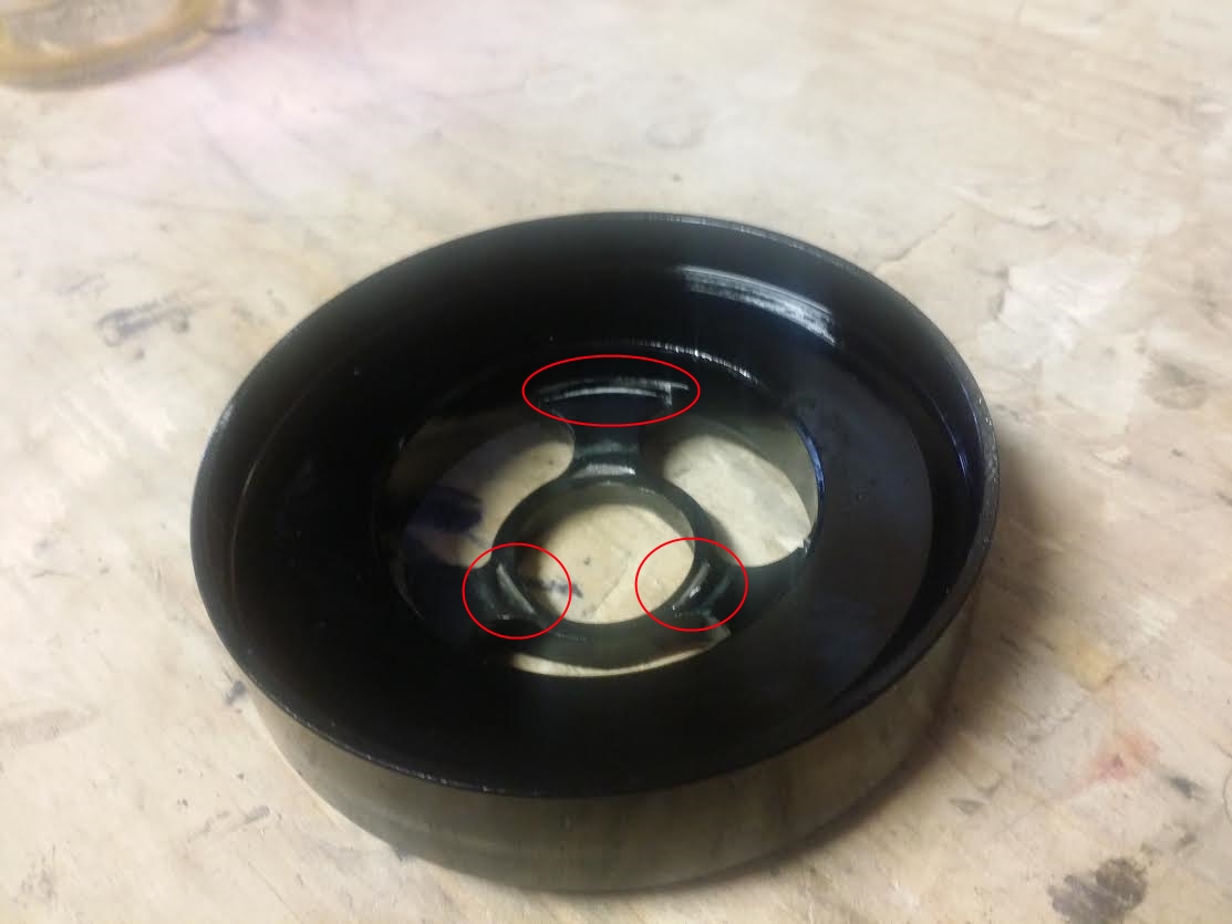 No, not the thermostatic sandwich plate. It is the cnc spacer (top one specifically, that the oil filter sits on) that cracked. I was torquing down to 30lb-ft. However, it never even got to much more than 1-2 lb-ft. It cracked effortlessly. Customer Service just emailed me about an hour ago saying they are sending me off a new spacer ![]() EDIT: I attached the cracked spacer with cracks circled in red. EDIT 2: Oops, ignore the bottom 2 circles, those are just marks. There are 2 more cracks in the same location as the top 1, but you can't see them due to the camera angle.