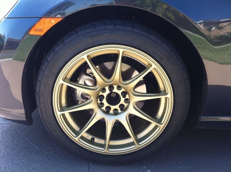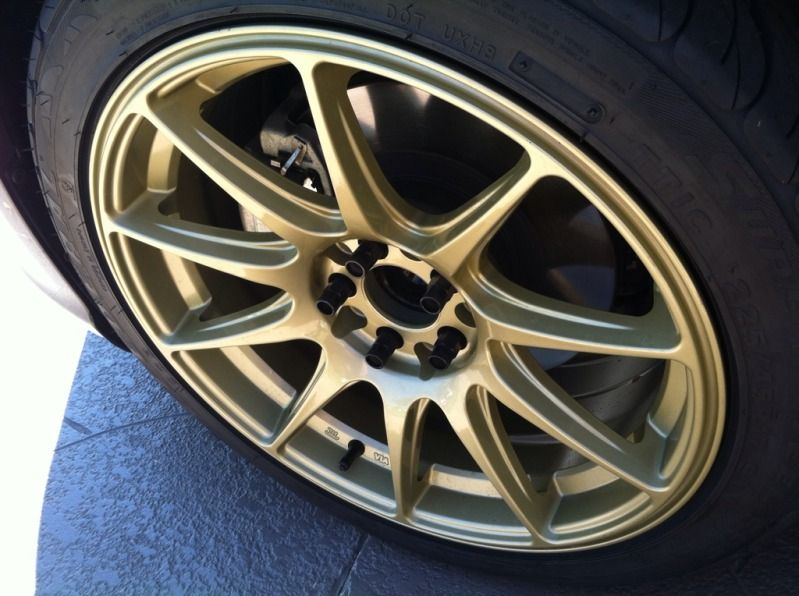 ![]() Gold XXR 527 17x8.25 +35 Weight of Wheel: 18 lbs. (told by salesman) Federal SS 595 225/45R17 Tire/Wheel Combined Weight: 45 lbs. Black Muteki Racing SR48 Extended Tuner Open Ended Lug Nuts 12x1.25MM (Stock suspension/height) ![]() ![]() ![]() ![]() ![]()