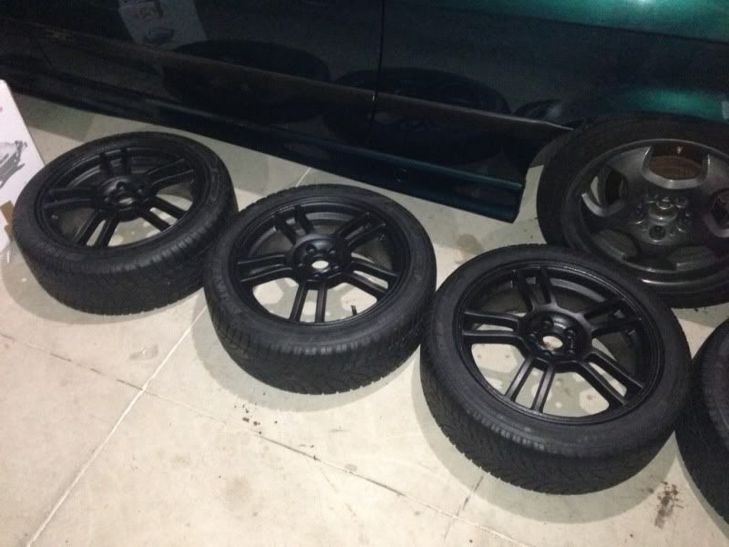 17x7.5 5x100 205/50/17 Dunlop Wintersport 3D tires ![]() 5 coats of plasti dip later: ![]() Should have them on the car tomorrow. |