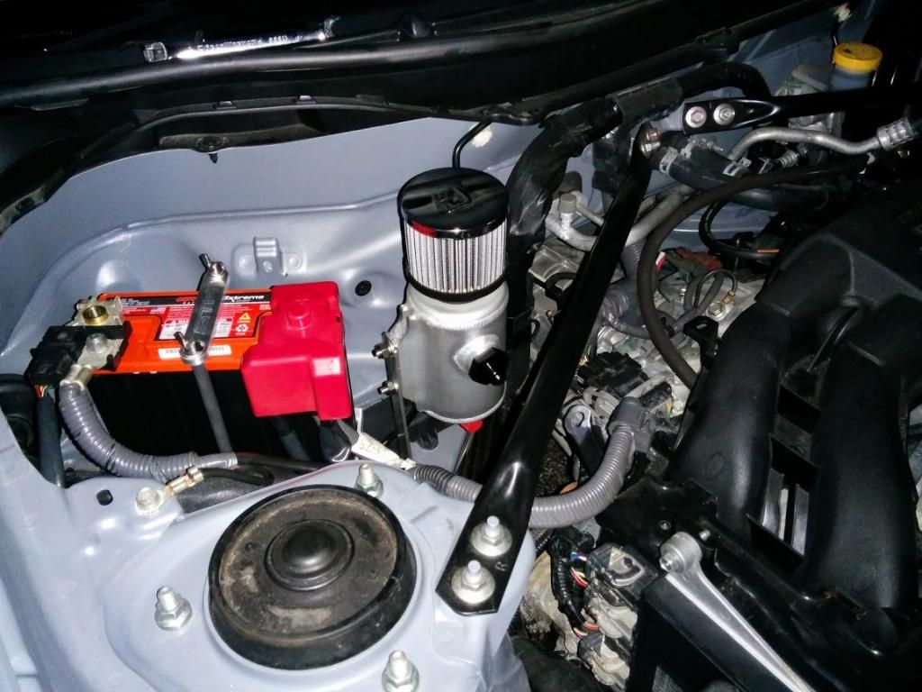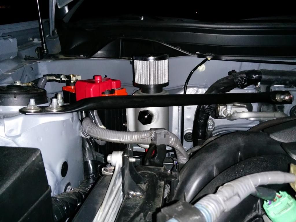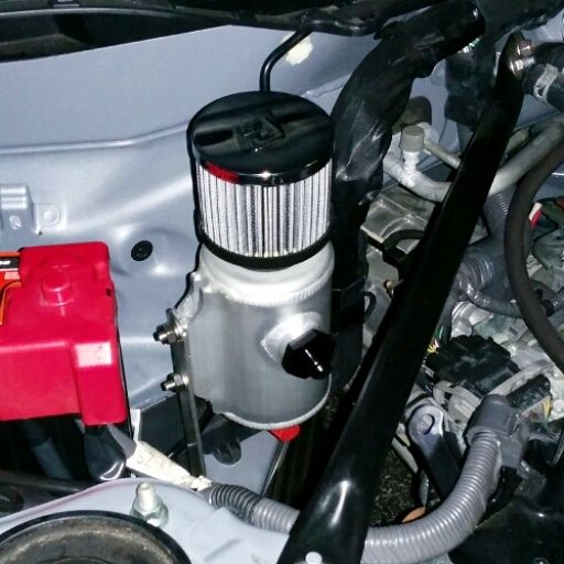 Update 7/27/14 Finally got around to doing a mock up of how I want it. I bought an aluminum bar from home depot. Decided I was going to use the battery tray bolt to mount it. Lifts the battery slightly, but not noticeable in my opinion. It is wobbly, but once the lines are connected and I zip tie them to something or themselves I feel it should be pretty stable. I want to eliminate the PCV valve and run direct to the catch can. Once I find out the the thread size on the block I can then order the appropriate -an fitting. I will be using -6 lines from the PCV block opening and the front vent under the ac comp. Final install I will also use DEI black wrinkle paint on the bracket and catch can. I will eventually change out the filter to a K&N also. ![]() ![]() ![]() ![]() Let me know what you think. Update 7/28/14 Vibrant part #'s if anyone is curious to replace the PCV Valve with a -AN fitting: