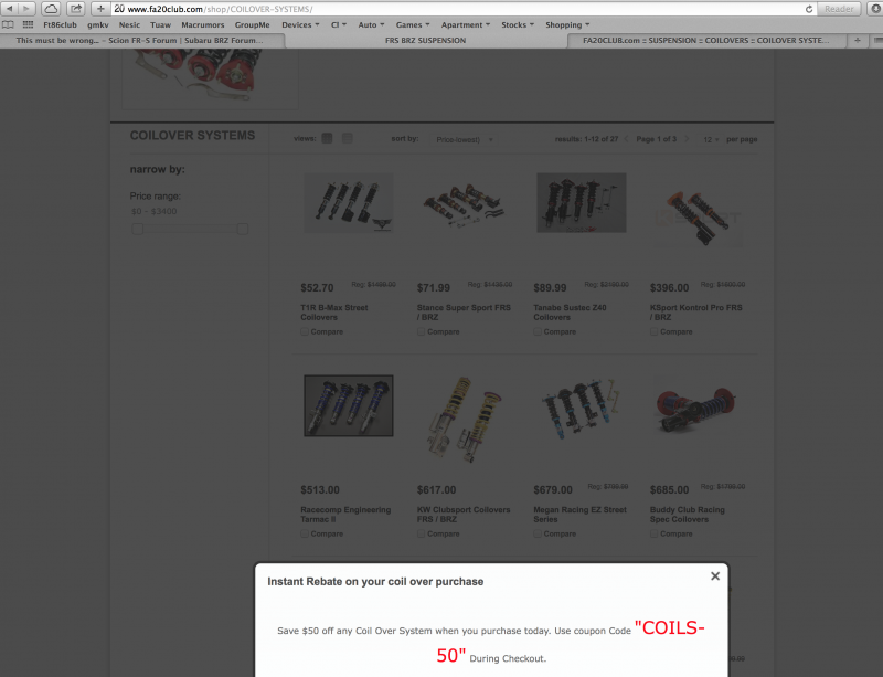 Sort price on the section low to high [IMG] [/IMG]coupon code to boot. are stance coils worth $22? |