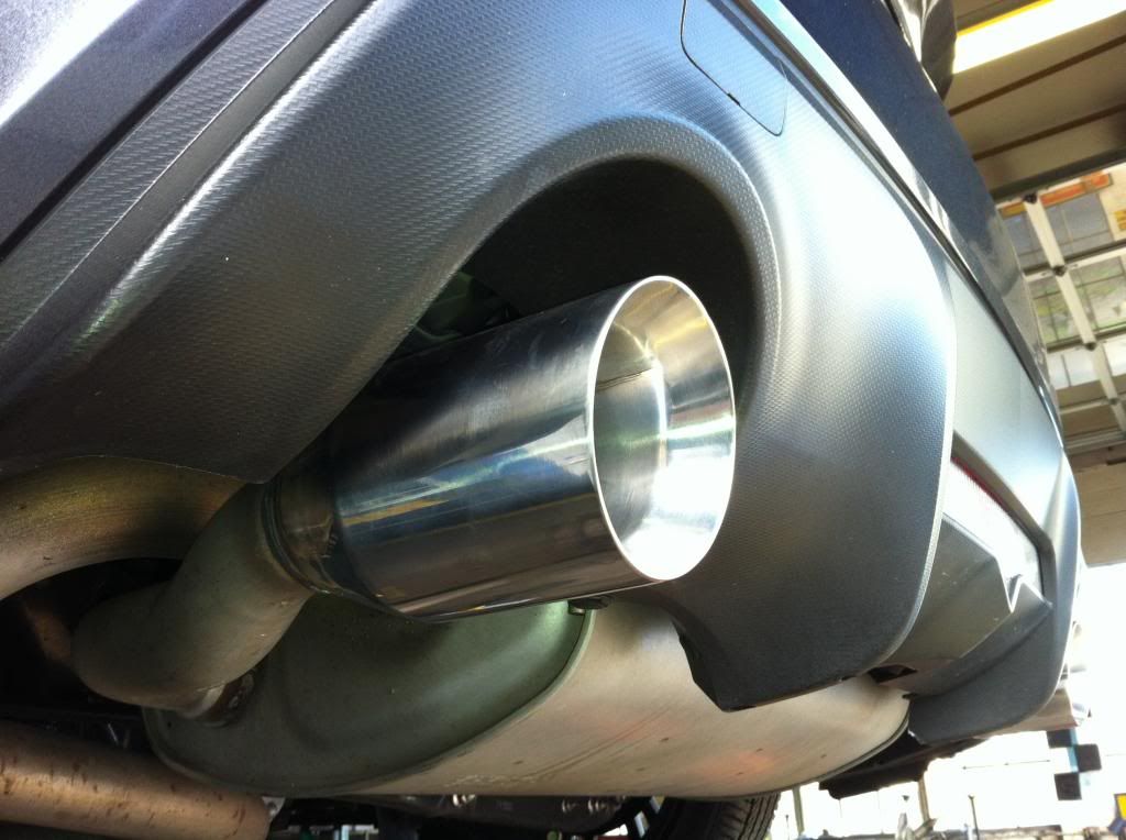 I'd looking into the Greddy SP Elite. I was able to get mine for $500 shipped off of a vendor here. Probably the most reasonably priced axleback. You won't get a huge sound, but it will sound OEM+ and looks much better than the Perrin Tips. EDIT: My neighbor got some pretty cool looking black tips from Auto Zone for $20 or something like that. I'll try to take some pictures if he's home.