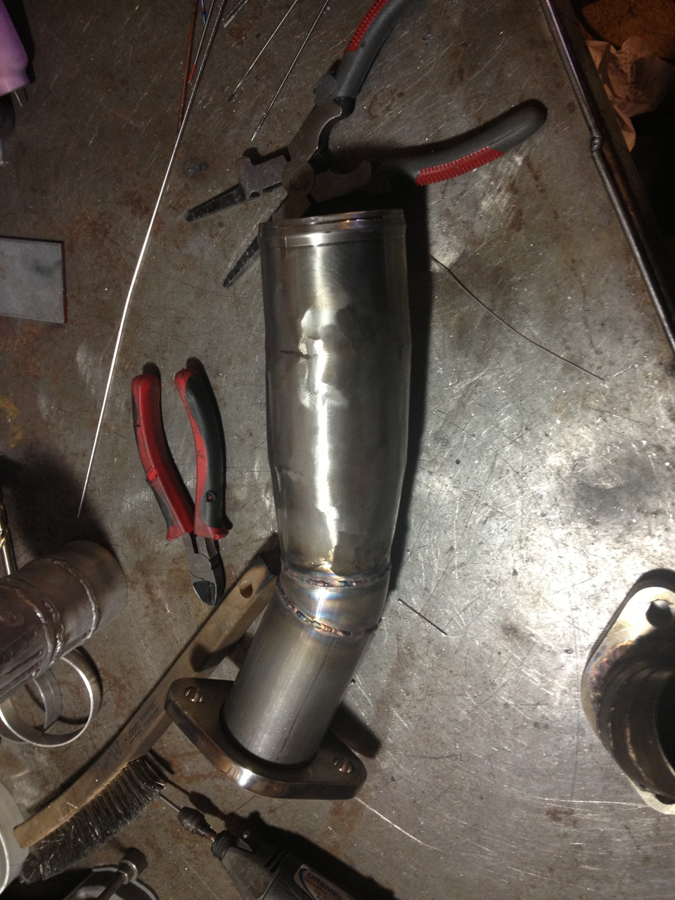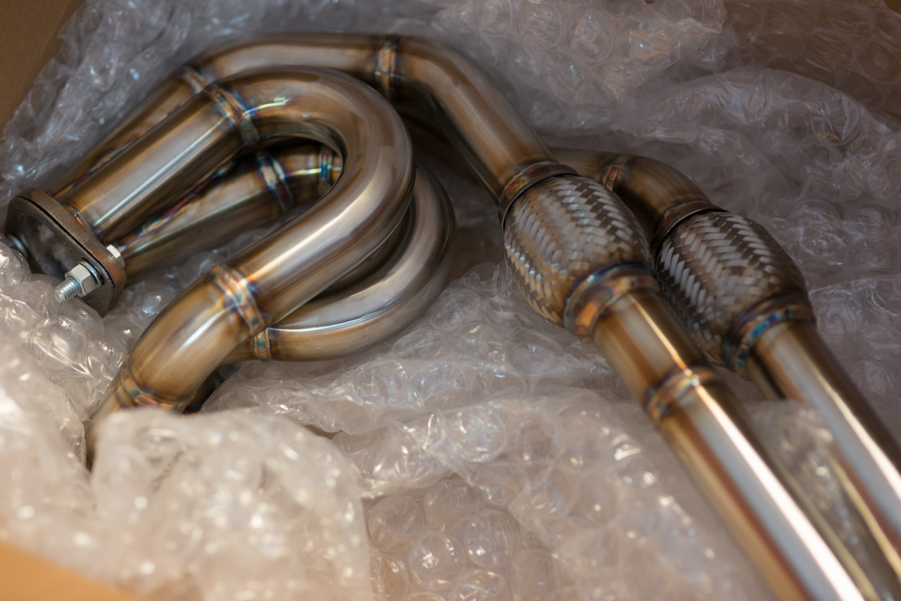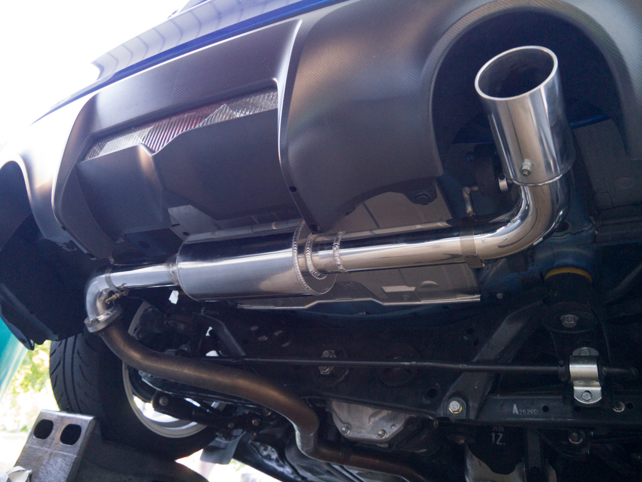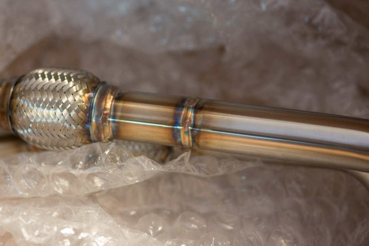 We started off playing with the intake while naturally aspirated. Stock snorkel: ![]() It is a bit small. So for kicks we made a simple aluminum version of a CAI, and it actually worked fairly well and sounded good, but did not yield any noticeable gains. We will hold out until something a bit more, lets say interesting, comes to the market. ![]() So back to playing with the exhaust. We made an aluminum axle back, as well as cat back. Using custom machined flanges the axle back ended up weighing in at about 4 lbs, and sounds absolutely wicked, without drone! These are likely going to be released later this year, we have 35 flanges here ![]() ![]() ![]() The exhausts were mocked up and sent our local autox racer for durability testing, who promptly destroyed the one prototype by driving in NYC low enough to be on the bumpstops! So much for the diff clearance...we'll stick to the axleback for now. Why we take our time testing this stuff... In the pursuit of power the suspension has plenty of room for improvement. A hotchkis rear sway bar and eibach front took place of the stock units. ![]()